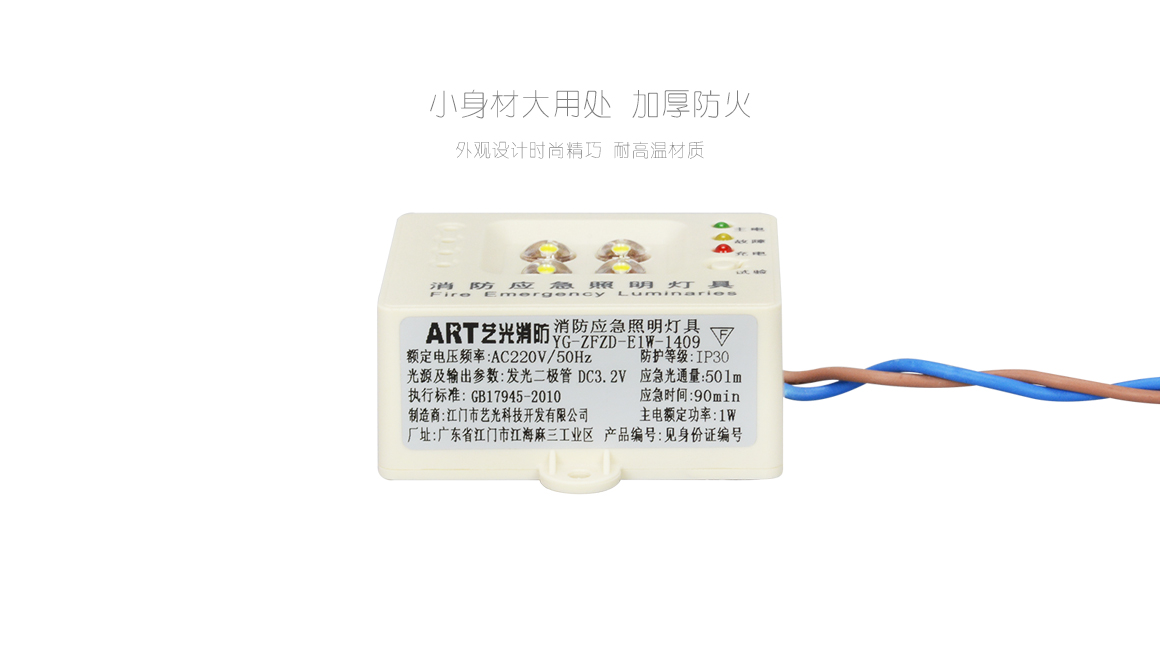 產(chǎn)品型號:YG-ZFZD-E1W-1409光源類型:LED*4應(yīng)急時間:≥90分鐘主電功率:1W安裝方式:可掛裝吸頂裝電池類型:鎳鎘AA1.2V防護(hù)等級: IP30產(chǎn)品尺寸:60*50*26mm執(zhí)行標(biāo)準(zhǔn):GB17945-2010新國標(biāo)