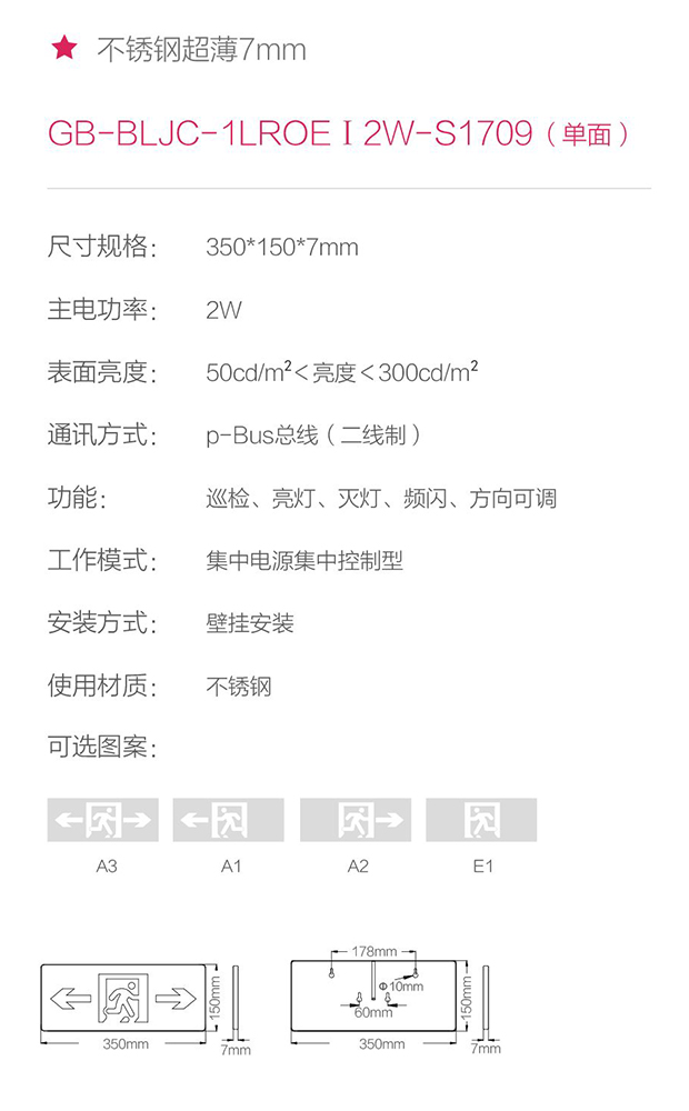 產(chǎn)品型號(hào):S1709主電功率:2W安裝方式:壁掛安裝防護(hù)等級(jí):IP30產(chǎn)品尺寸:350*150*7mm