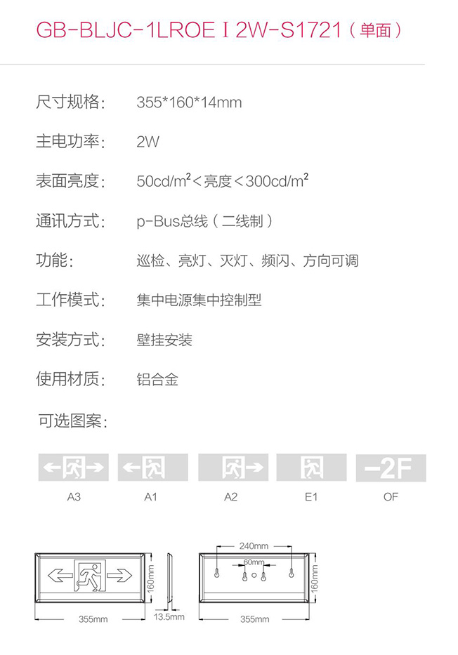 藝光集中電源集中控制型應急智能疏散指示燈 S1721(單面)