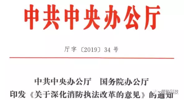 2019年3月19日,中央全面深化改革委員會第七次會議通過了《關(guān)于深化消防執(zhí)法改革的意見》。會議強(qiáng)調(diào)深化消防執(zhí)法改革,要創(chuàng)新監(jiān)管方式,強(qiáng)化源頭治理,深化簡政放權(quán),堅(jiān)決破除各種不合理的門檻和限制,加強(qiáng)事中事后監(jiān)管,規(guī)范執(zhí)法行為,推行消防執(zhí)法事項(xiàng)全部向社會公開,構(gòu)建消防監(jiān)督管理體系,確保消防安全形勢持續(xù)穩(wěn)定向好。