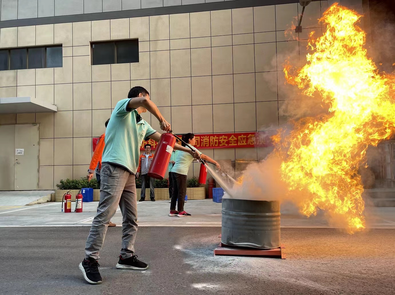 通過理論和實(shí)操相結(jié)合的方式,在為職工們講解火災(zāi)基本常識、滅火基本常識、火災(zāi)逃生知識的同時(shí),也邀請職工們進(jìn)行實(shí)際的滅火操作,熟悉滅火器材。