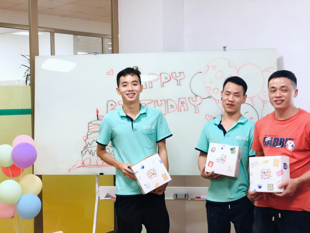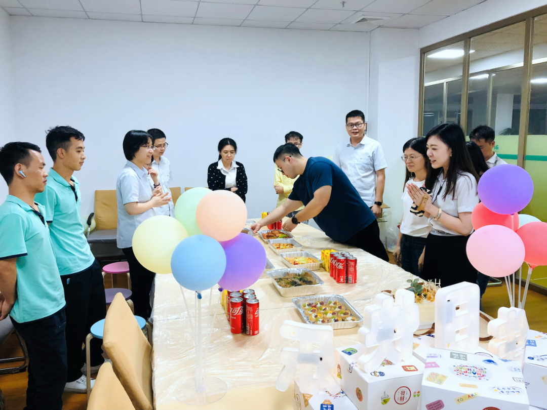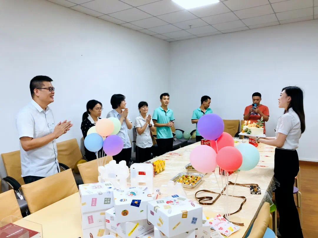 為了打造一個難忘的生日會,公司提前做好了精心準備。現(xiàn)場布置得溫馨而浪漫,五彩的氣球、鮮花和彩帶營造出歡樂的氛圍,董事長助理張嘉倫作為公司代表也為過生日的同事們送上了精心準備的禮物和真切的祝福。