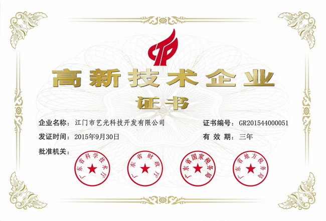 自2001年江門市藝光科技開發(fā)有限公司成立,十五年,從十幾平米的小作坊到近兩萬平米的廠房規(guī)模;十五年,從寥寥幾人到數(shù)百人的規(guī)模;十五年,從最初的幾款產(chǎn)品到成百上千款產(chǎn)品;十五年,從寂寂無名到今天的如日中天。十五年來,藝光科技攬獲多項(xiàng)榮譽(yù),集諸多光芒與榮耀于一身。十五年來,藝光科技創(chuàng)造了一個(gè)又一個(gè)奇跡。