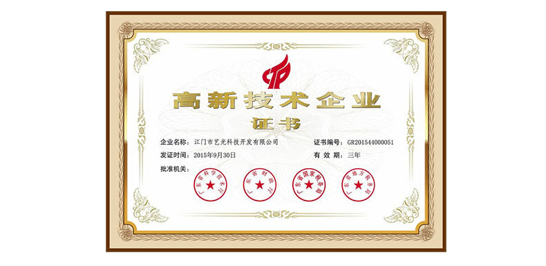 (藝光科技國家高新技術(shù)企業(yè)證書)