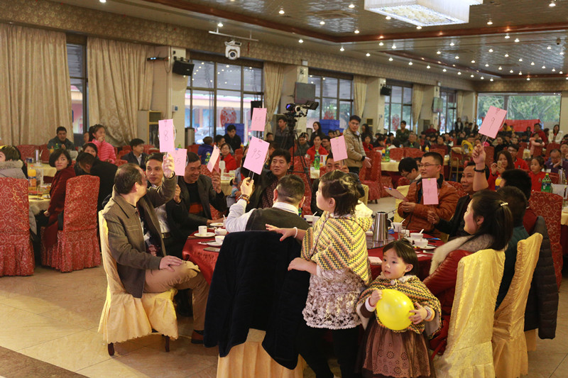 表演結束后,年會正式進入晚宴環(huán)節(jié),張總為藝光同事們派發(fā)新年紅包并與大家碰杯,相互祝福。