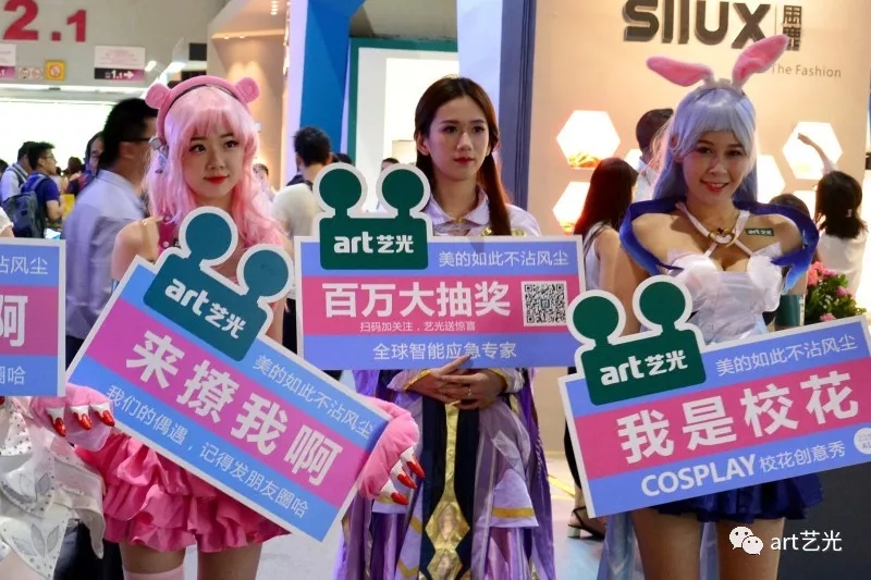 為配合本次展會活動,藝光為行業(yè)精心策劃了“藝光cosplay?;▌?chuàng)意秀”“百萬大抽獎”活動,四大美女校花齊助陣展會,大玩cosplay創(chuàng)意,令藝光品牌在展會上人氣大增,燃爆照明展。
